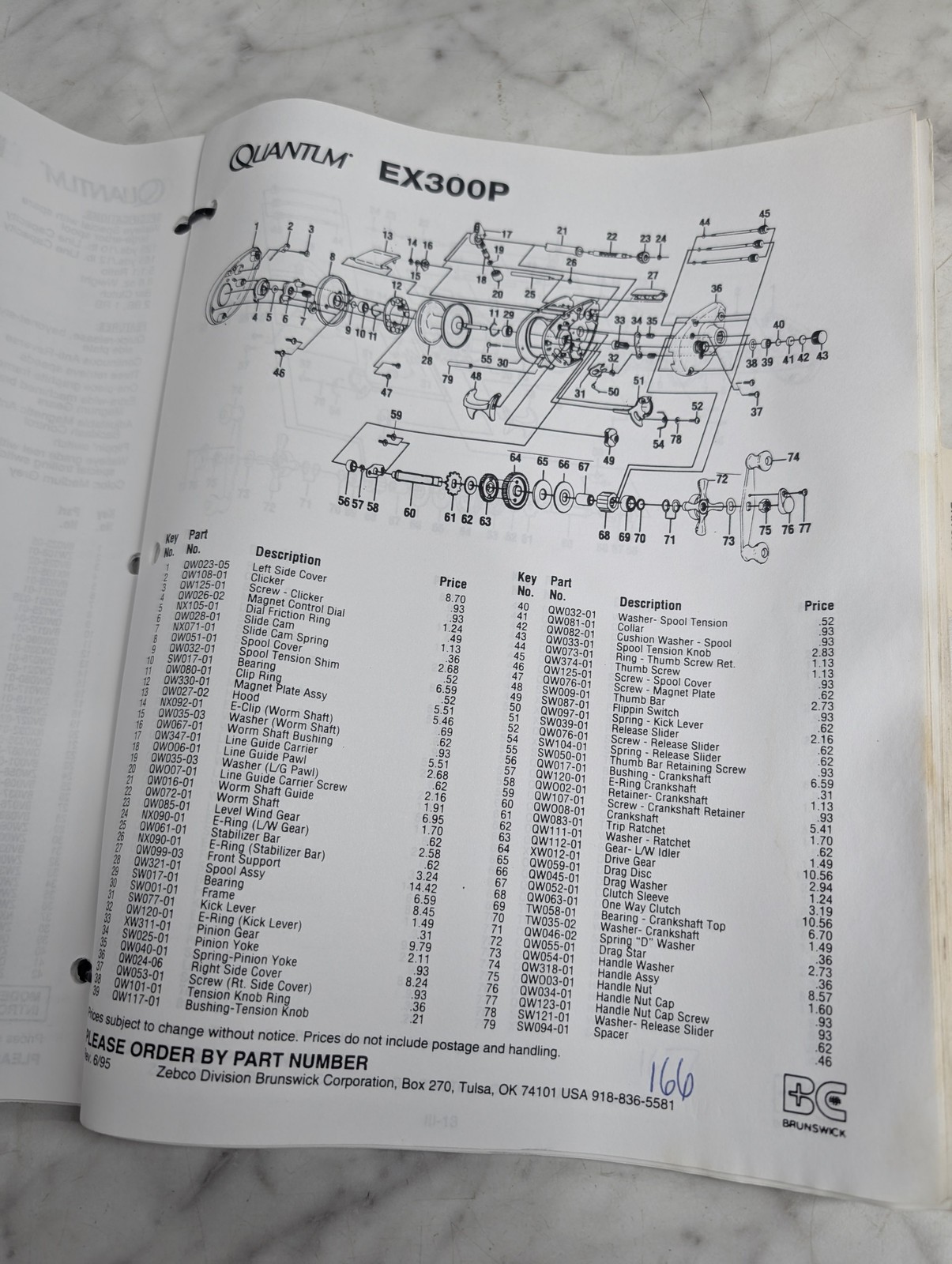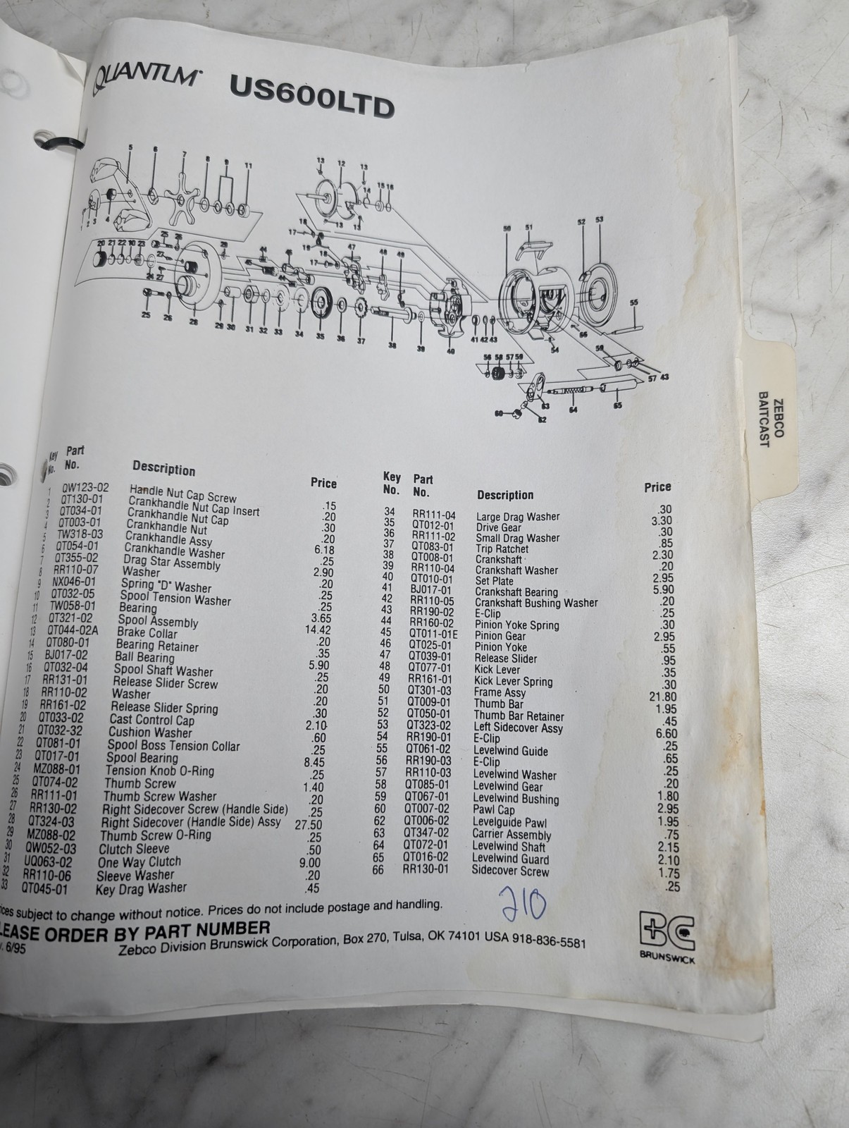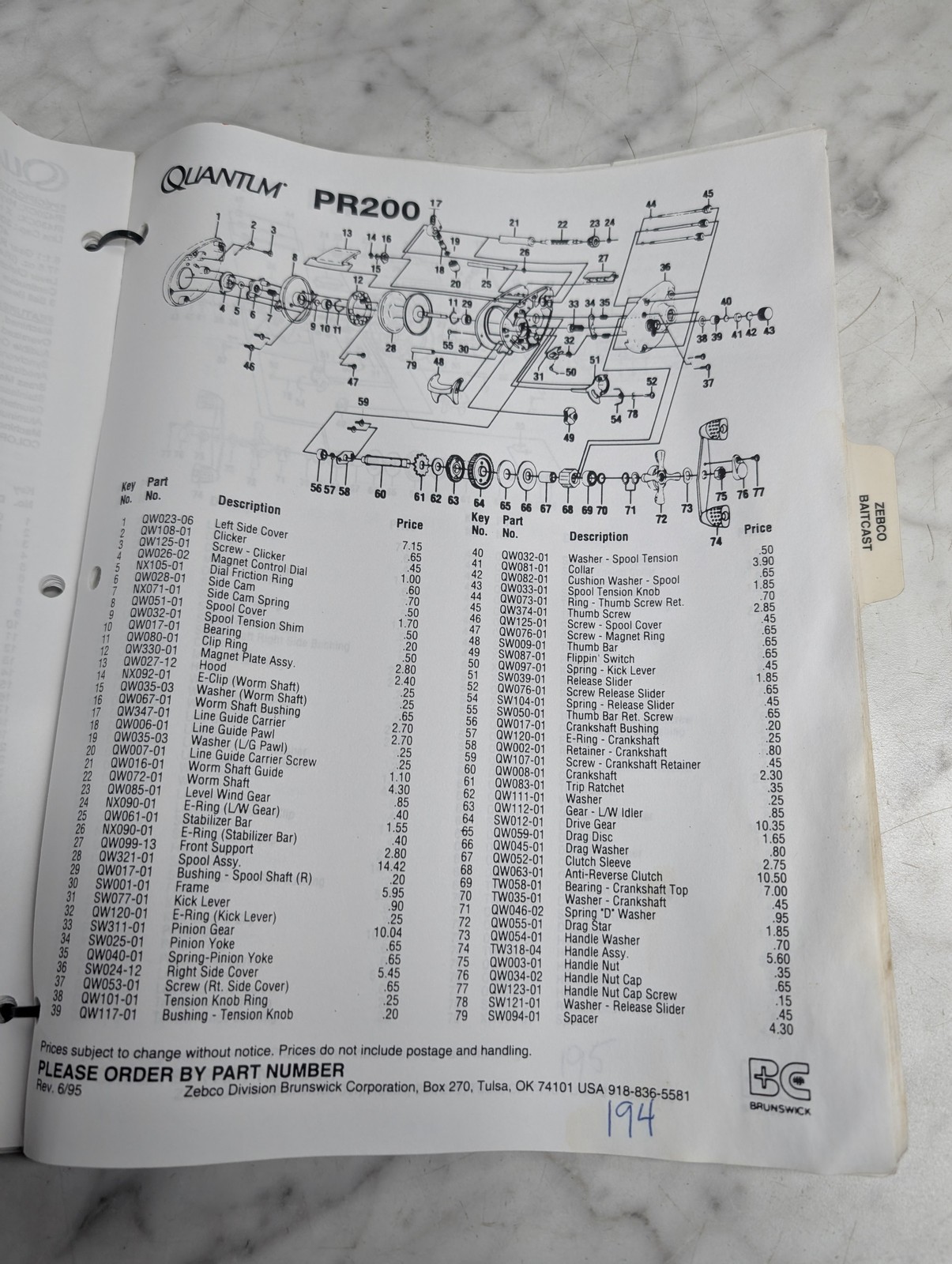 Zebco Service Parts List Catalog Manual Baitcast Fishing Reel Schematics 1990’S