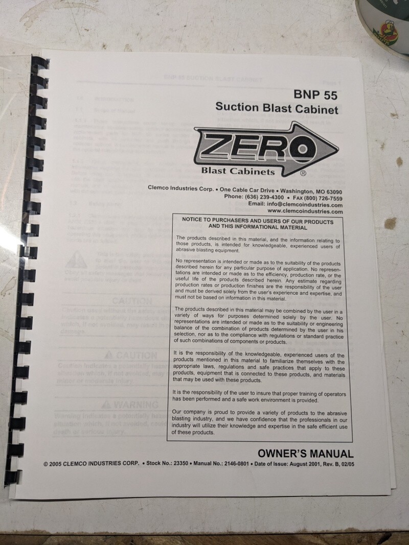 Zero Bnp 55 Suction Cabinets Model Owner Service Manual Repair Parts List 2001