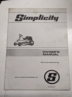 Simplicity Owner Manual Wonder-Boy 808 No 963 Op72 Parts List Operators Used literature. simplicity….