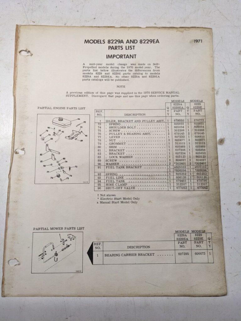 Lawn Boy Parts List For 8229A 8229Ea Mid Year 1970 Single Page Manual Insert Factory service manual for lawn….
